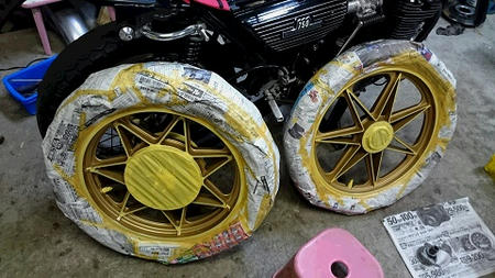 ホイール塗装の準備に、またまたマスキング作業です。