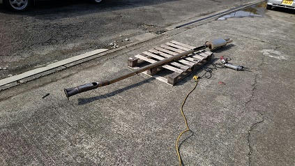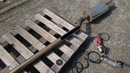 マフラーが擦る所を、思い切って切り取り、フラット溶接しますよ!!