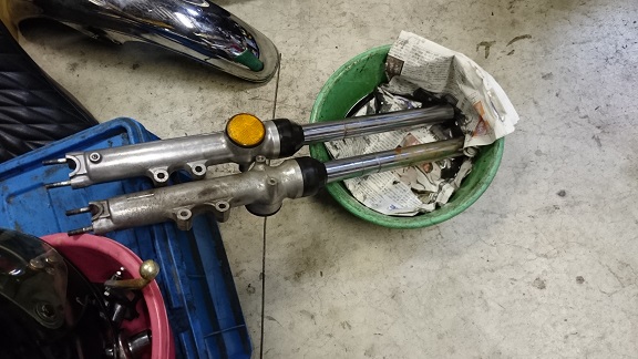 フロントホークのOHとステムベアリングの打ち替えもやっておきます。