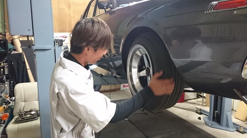 ハブのベアリングをチャックしてくれている、ゴトちゃん!