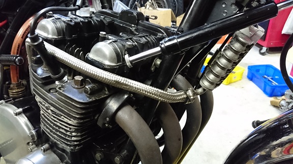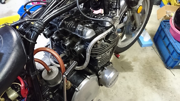 当時物のJMCオイルくらーの装着も頼まれましたが、元々のホースがステンメッシュなので・・・取付時に何度も手に刺さり辛かった。。。。