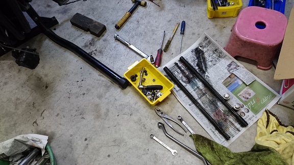 フロントフォークなんて、オイル50ccぐらいしか入ってなかったよ(笑)けど、匂いは一人前でした!