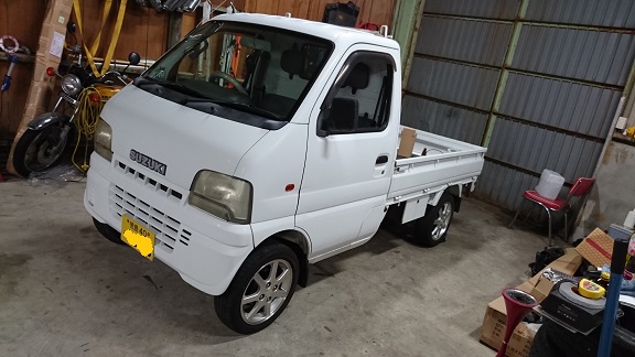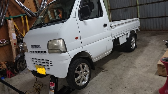 作業ついでに、家の軽トラも修理しておきます。