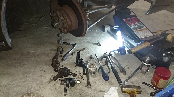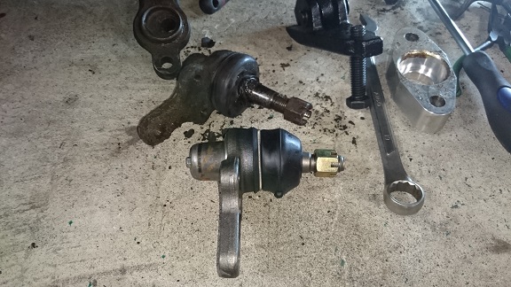 ついでにフロントもセンターロールアダプター(25mmとスペーサ5mmの取付できるアダプター製作済み・販売予定!!)を取り付け、ボールジョイントも交換しておきます!!