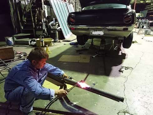 マフラーを出来るだけ上にあげたいという事なので、私の後輩に頼みマフラー製作してもらいました・・・・
