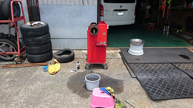 今日は、コニーちゃんとMさんがホイールを磨きにガレージに・・・・。