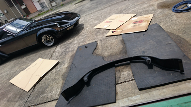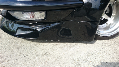 洗車が終わり、路上に出したいけど、フロントリップの厚みが凄くて道路に出せない。