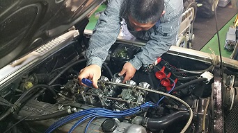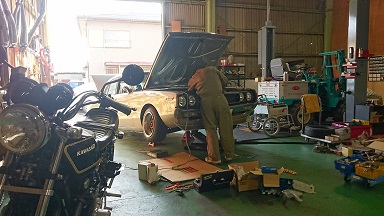 乃一のゴールドヨンメリがエンジンかからないという事で、仕方なくガレージへ。。。。