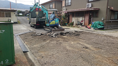 今日は、古い舗装をまくり、砕石で慣らして・・・