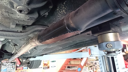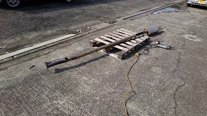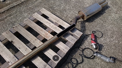 マフラーが擦る所を、思い切って切り取り、フラット溶接しますよ!!