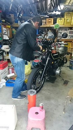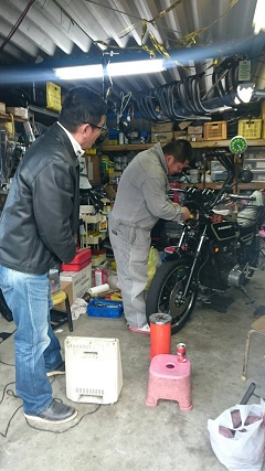 が、午前中は、連長のマフラー加工に付き合うことに。。。。