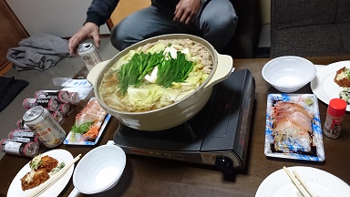 コニーの知り合いのところでもつ鍋をするということで、ワイとまぁ―君が誘われ???