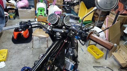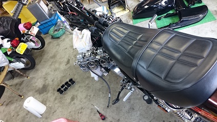 キャブは、「魔法の液」に漬け込み、その間に、ハンドルやタイヤ交換しておきます。