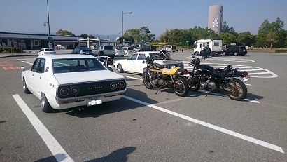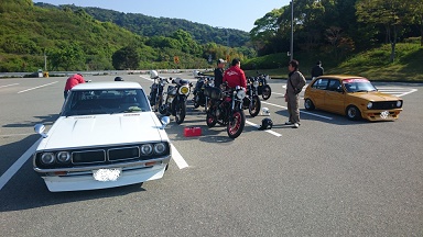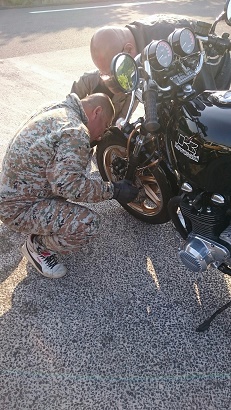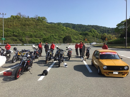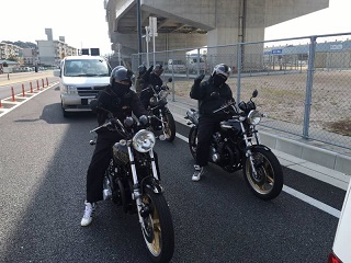 単車自走3台! 単車トラブルの副長は車での参加です。