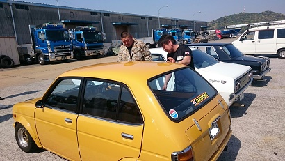 全然問題なく入れましたが、朝合流した直幸のジャパンは・・・ちょっと危険なので、会場手前のダイキの駐車場に停車!